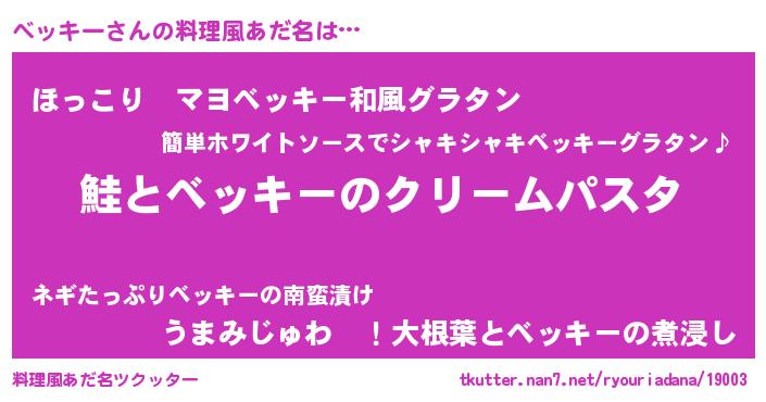 | 女子向けラノベタイトル風あだ名 | 『死神ベッキーの再婚』 |