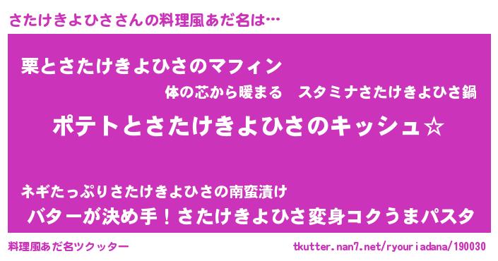 | 胡散臭い通販商品みたいなあだ名 | 『伝統あるサプリメント…その名も「さたけきよひさ」』 |