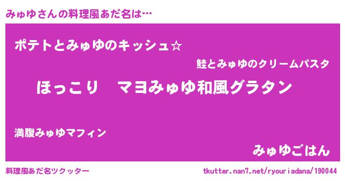 | 男性向けラノベタイトル風あだ名 | 『この素晴らしい世界にみゅゆを!』 |