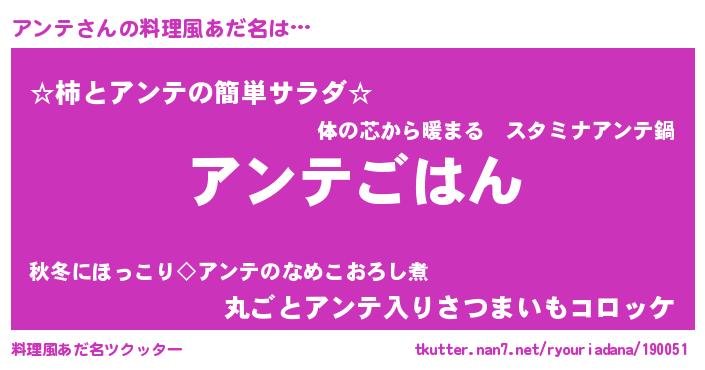 | 意味不明あだ名 | 『たけのこ科アンテ属』『自称アンテ』 |