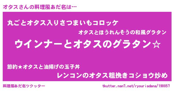 | ヘコむあだ名 | 『なまこ酢』『オタっふぃ~』 |