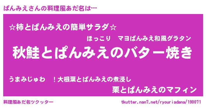 | 胡散臭い通販商品みたいなあだ名 | 『来世でも幸せになれる水素水…その名も「ぱんみえ」』 |