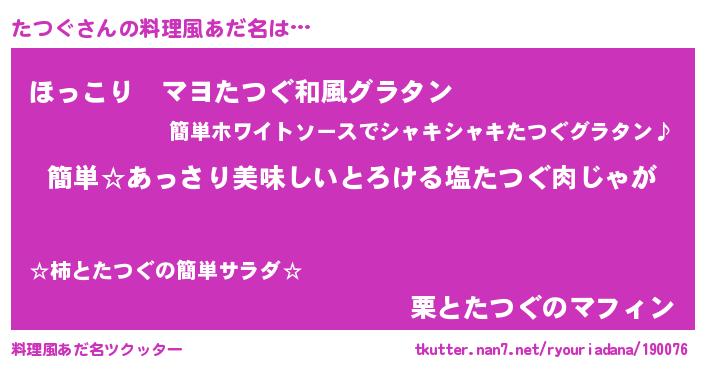 | 意味不明あだ名 | 『永久保存たつぐ』『たつぐフォーエバー』 |