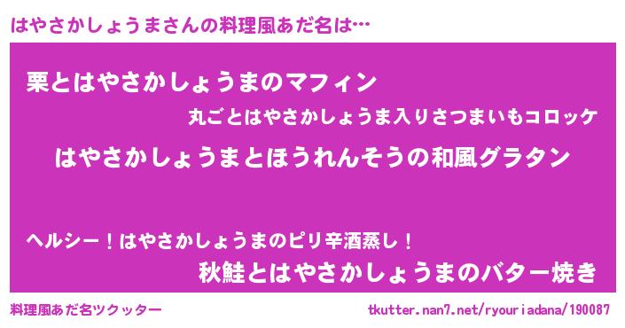 | 胡散臭い通販商品みたいなあだ名 | 『前代未聞の招き猫…その名も「はやさかしょうま」』 |