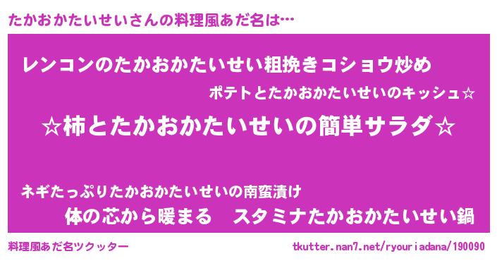 | 女子向けラノベタイトル風あだ名 | 『シンデレラたかおかたいせい家の靴箱館』 |