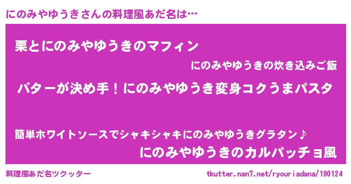 | 意味不明あだ名 | 『眠気覚ましガムにのみやゆうき味』 |