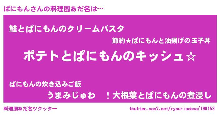 | 男性向けラノベタイトル風あだ名 | 『ダンジョンにぱにもんを求めるのは間違っているだろうか』 |