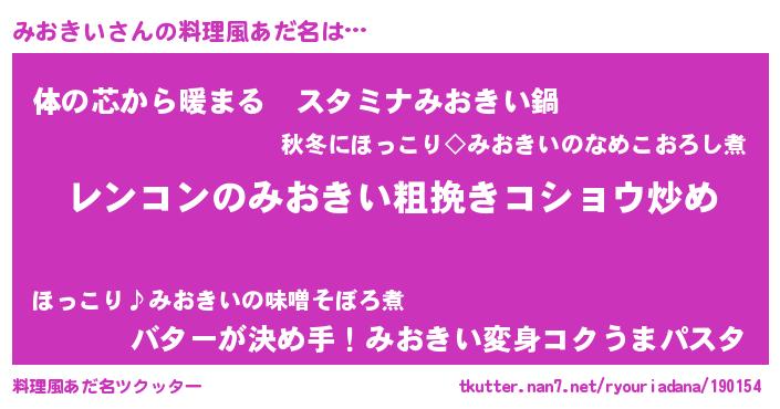 | 胡散臭い通販商品みたいなあだ名 | 『ガンによく効く冬虫夏草…その名も「みおきい」』 |