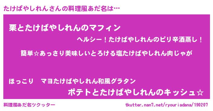 | 意味不明あだ名 | 『永久保存たけばやしれん』 |