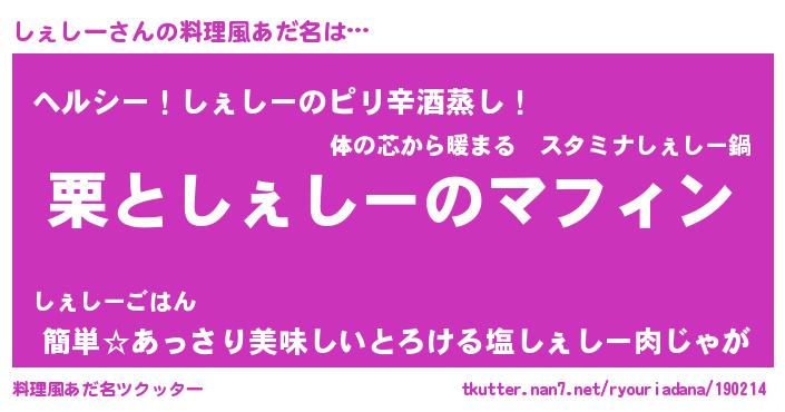| 意味不明あだ名 | 『自称しぇしー』『永久保存しぇしー』 |