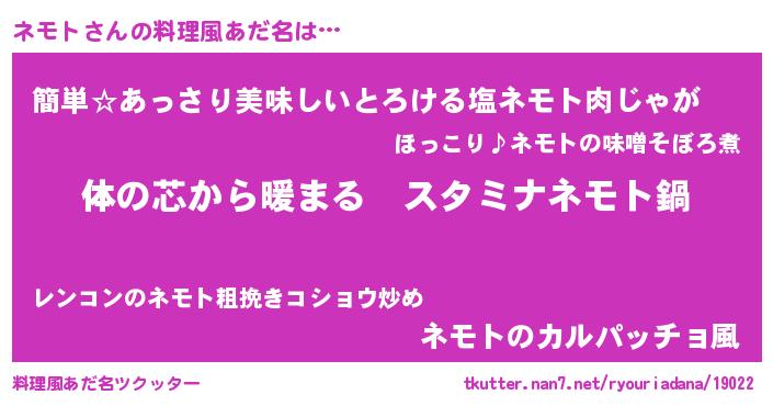| ファンタジー風あだ名 | 『エターナルネモトー』『ネモディッシュ』 |