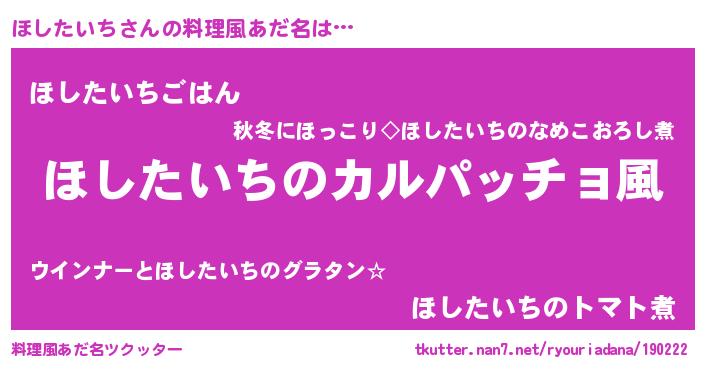 | 意味不明あだ名 | 『住所不定無職ほしたいち(59歳)』 |