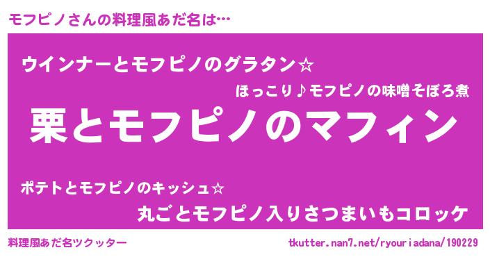 | 意味不明あだ名 | 『モフピノフォーエバー』 |