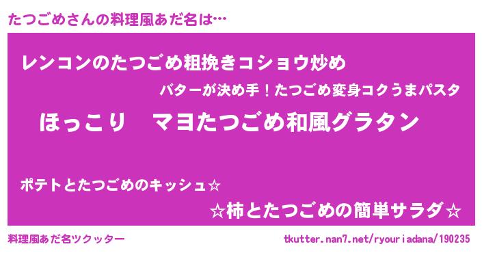 | 意味不明あだ名 | 『住所不定無職たつごめ(43歳)』 |