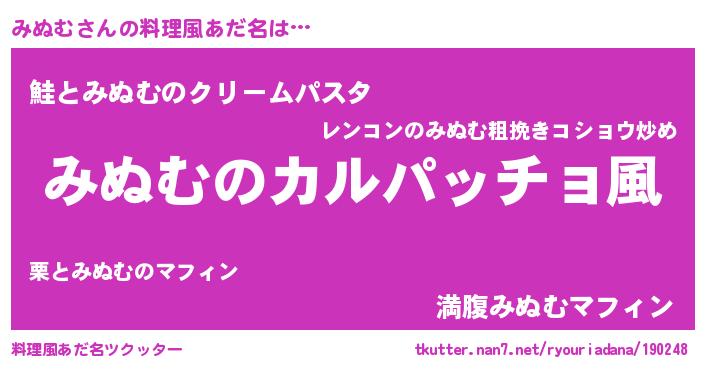 | ヒーロー風カッコイイあだ名 | 『仮面ミヌダー』『天空の使者みぬむ』 |