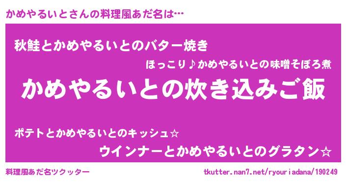 | ヘコむあだ名 | 『かめやるいと(笑)』『豆乳』 |