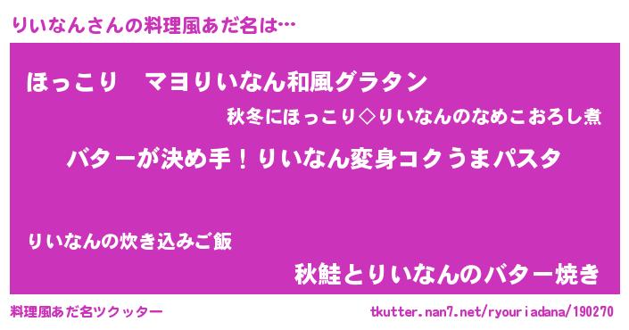 | ヘコむあだ名 | 『りいなん(遠い目)』『酢こんぶ』 |