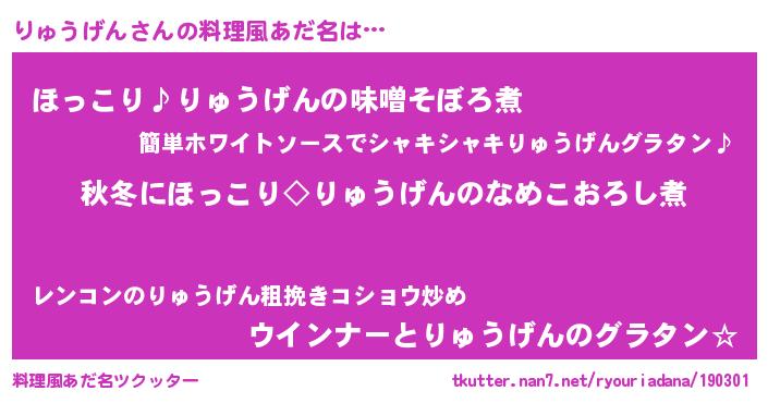 | 意味不明あだ名 | 『ペロリンりゅうげん』『自称りゅうげん』 |