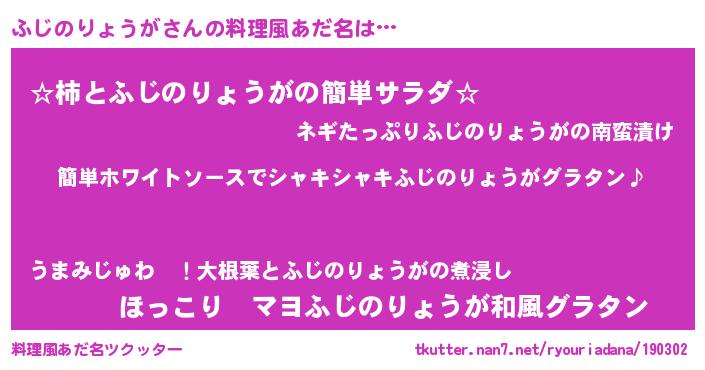 | 男性向けラノベタイトル風あだ名 | 『ふじのりょうがの嫁は女の子じゃないと思った?』 |