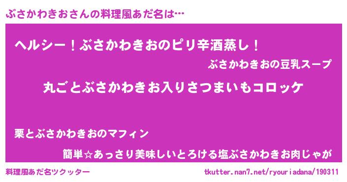| 男性向けラノベタイトル風あだ名 | 『この素晴らしい世界にぶさかわきおを!』 |
