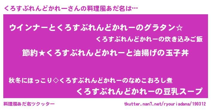 | 男性向けラノベタイトル風あだ名 | 『くろすぶれんどかれーの憂鬱』 |