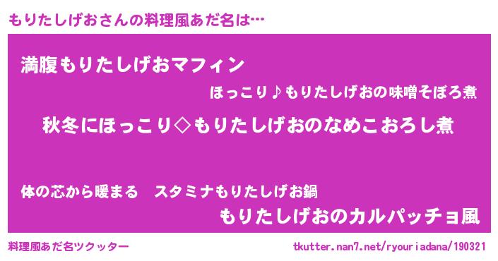 | ヘコむあだ名 | 『もりたしげお(笑)』『もりっふぃ~』 |