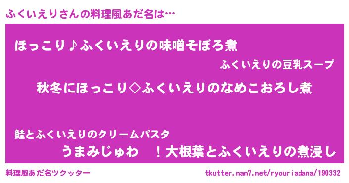 | 男性向けラノベタイトル風あだ名 | 『ふくいえりに滅ぼされるだけの簡単なお仕事です』 |