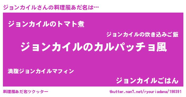 | 意味不明あだ名 | 『住所不定無職ジョンカイル(89歳)』 |