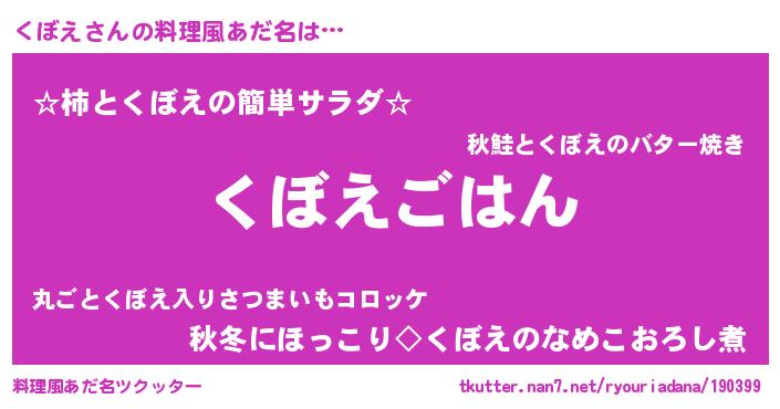 | 胡散臭い通販商品みたいなあだ名 | 『絶対に幸福をもたらす水素水…その名も「くぼえ」』 |