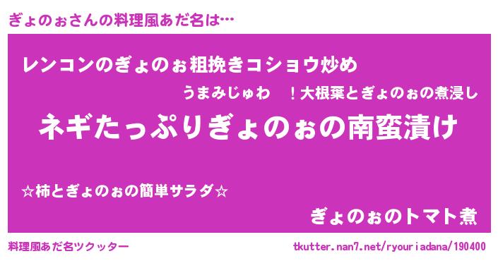 | ファンタジー風あだ名 | 『ギョフェル』『ゼギョトゥ』 |