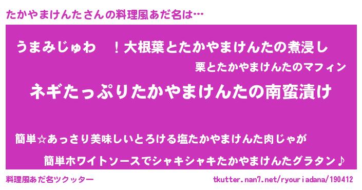 | 胡散臭い通販商品みたいなあだ名 | 『億万長者になれるブレスレット…その名も「たかやまけんた」』 |