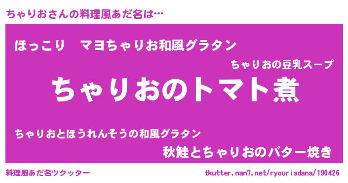 | ヘコむあだ名 | 『ちゃりお(震え声)』『ちゃっちょ』 |