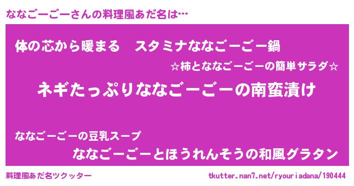 | ポケモン風あだ名 | 『ナナチュウ』『ナナゴダネ』 |