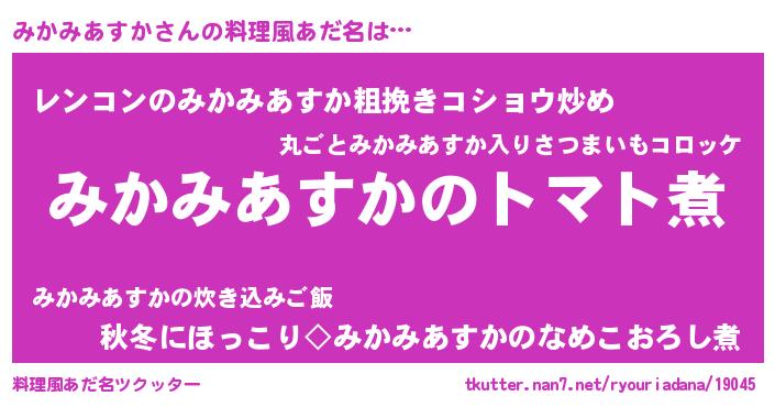 | ヘコむあだ名 | 『みかお』『みかみあすか(爆)』 |