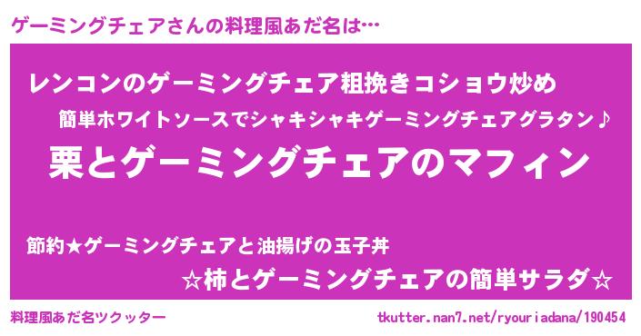 | 意味不明あだ名 | 『自称ゲーミングチェア』 |