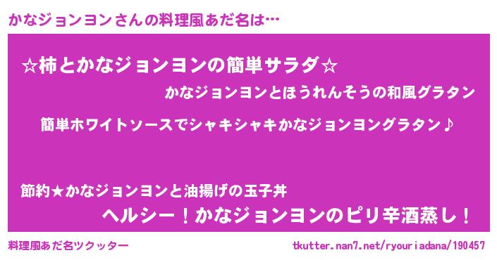 | 男性向けラノベタイトル風あだ名 | 『かなジョンヨンの嫁は女の子じゃないと思った?』 |