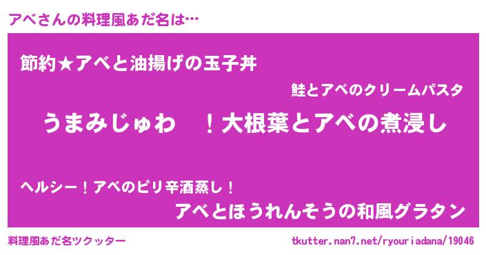 | 女子向けラノベタイトル風あだ名 | 『アベの婚約者』『アベ姫と円卓の騎士』 |