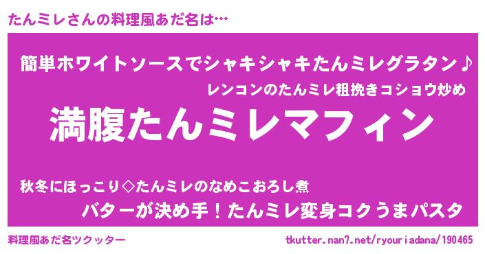 | 男性向けラノベタイトル風あだ名 | 『たんミレという概念が存在しない退屈な世界 』 |