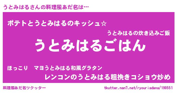 | ヘコむあだ名 | 『うとぷりん』『うとみはる(笑)』 |