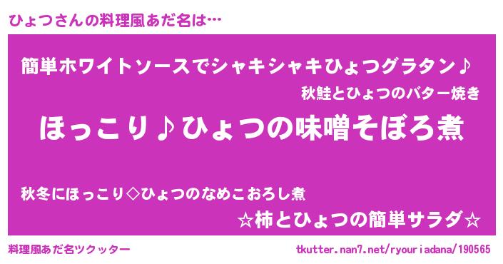| ポケモン風あだ名 | 『ヒョチュウ』『ヒヒョツ』 |