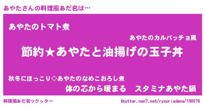 | 意味不明あだ名 | 『ペロリンあやた』『あやたフォーエバー』 |