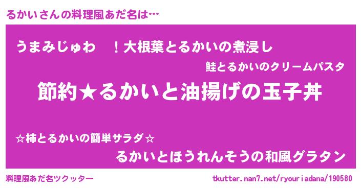| 意味不明あだ名 | 『ペロリンるかい』『るかいフォーエバー』 |