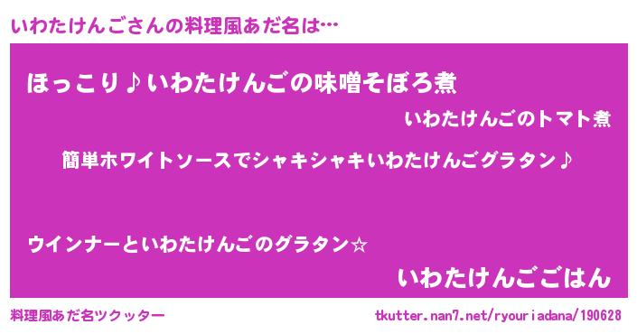 | ヒーロー風カッコイイあだ名 | 『幻影騎士イワ』『スーパーイワタケンゴ』 |