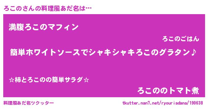 | ヘコむあだ名 | 『ろこぷりん』『ろこの(笑)』『豆乳』 |