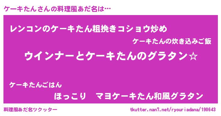 | 意味不明あだ名 | 『ケーキたんフォーエバー』 |