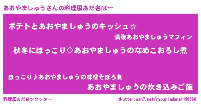 | 男性向けラノベタイトル風あだ名 | 『あおやましゅうに滅ぼされるだけの簡単なお仕事です』 |