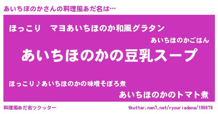 | ポケモン風あだ名 | 『ヒアイチホノカ』『アーイイ』 |