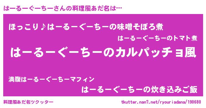 | 意味不明あだ名 | 『住所不定無職はーるーぐーちー(79歳)』 |