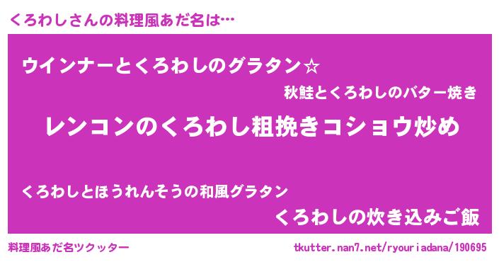 | 意味不明あだ名 | 『自称くろわし』『くろわしフォーエバー』 |