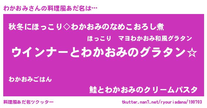 | ヘコむあだ名 | 『なまこ酢』『わかおみ(爆)』 |